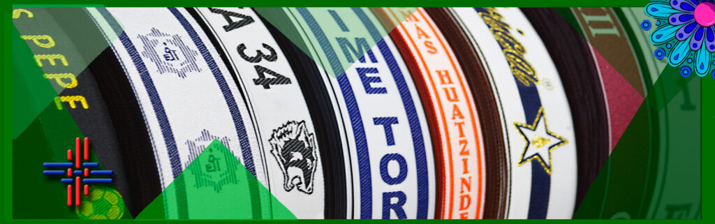 Perzonalizamos Tu Cinta Tejida con el nombre de la escuela, empresa, club deportivo, o cualquier tipo de elemento decorativo, lo que requieras para tu cinta Bordada de diseño continuo.